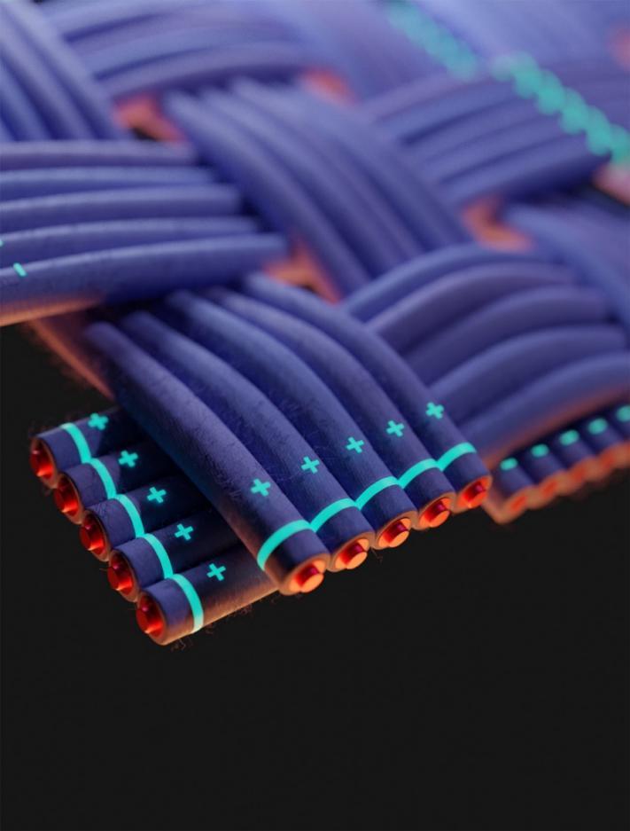 如何通過設(shè)計新結(jié)構(gòu) (如創(chuàng)建纖維鋰離子電池) 滿足電子產(chǎn)品高度集成化和柔性化發(fā)展要求,是鋰離子電池領(lǐng)域面臨的重大挑戰(zhàn)。復(fù)旦大學(xué)彭慧勝、陳培寧等發(fā)現(xiàn)纖維鋰離子電池內(nèi)阻與長度之間獨特的雙曲余切函數(shù)關(guān)系,即內(nèi)阻隨長度增加并不增大,反而先下降后趨于穩(wěn)定。在此理論指導(dǎo)下構(gòu)建的纖維鋰離子電池具有優(yōu)異且穩(wěn)定的電化學(xué)性能,能量密度較過去提升了近 2 個數(shù)量級,彎折 10 萬次后容量保持率超過 80%;建立的世界上首條纖維鋰離子電池生產(chǎn)線,實現(xiàn)了其規(guī)?;B續(xù)制備;編織集成得到的纖維鋰離子電池系統(tǒng),電化學(xué)性能與商業(yè)鋰離子電池相當(dāng),而穩(wěn)定性和安全性更加優(yōu)異。